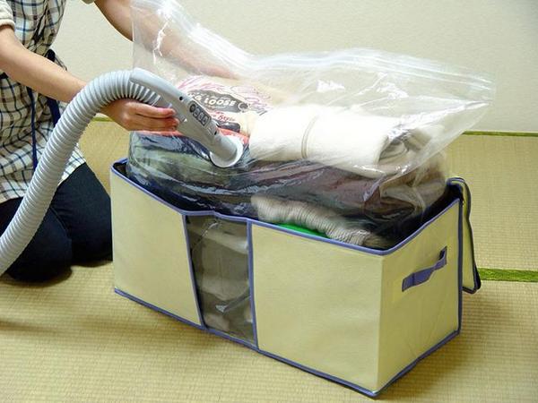 バルブ式衣類圧縮袋[収納ケース付き]【押入れ収納】ポイント10倍【10P24Nov09】【tm】【インテセール】【P5】価格: 2,604円レビュー評価: 4.14 レビュー数:7 かさばる衣類を簡単バルブの圧縮袋でいたわり収納!衣替えの時期に、収納が大変な冬物夏物を一気に収納!バルブに掃除機の口を当てて圧縮して、付属のケースにしまうだけ!収納ケースには窓が付いているので、中身を確認するために、いちいち出し入れも必要ありません!取っ手付きだから、押し入れの奥から出すのも簡単。使わない時は、たたんでコンパクトに。 ■仕 様 サイズ ケース:縦30x横64x高さ30cm圧縮袋:縦90x横90cm 重量 ケース:615g収納袋:130g 材質 圧縮袋:ナイロンフタ、バルブ、スライダー:ポリエチレンケース:不織布 |